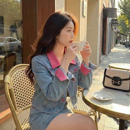 [핑크엘리제]컬러포인트 카라자켓 데님셋업 젤러티아투피스