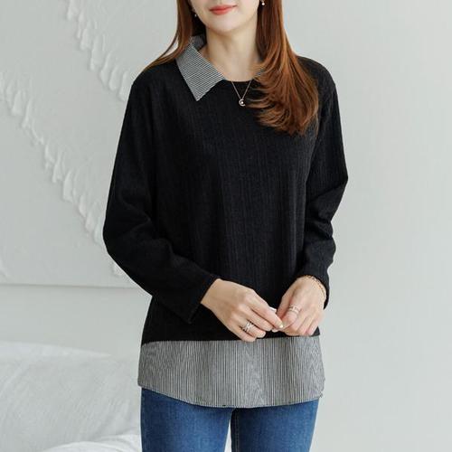 [데드라](110size)줄카라레이어드티셔츠 TBD5058_DC
