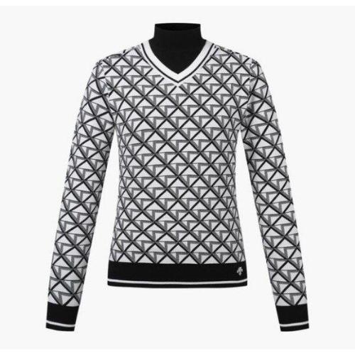 [데상트골프]M 데상트골프웨어 GQC DP12WFKV33-BLKG 여성 패턴 니트 슬리브리스 / BLKG