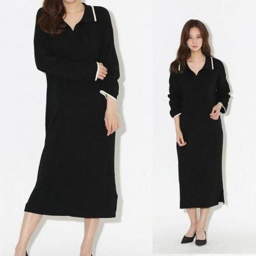 [유야]기모 무지 하이넥 집업 카라 긴팔 롱 원피스 -OP0452H- 빅사이즈 루즈핏 여성 겨울