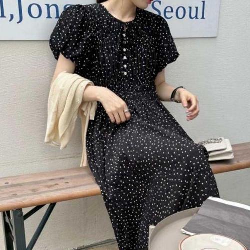 여성 봄 데이트룩 도트 땡?이 퍼프 반팔 롱 원피스 WFKZ8QU