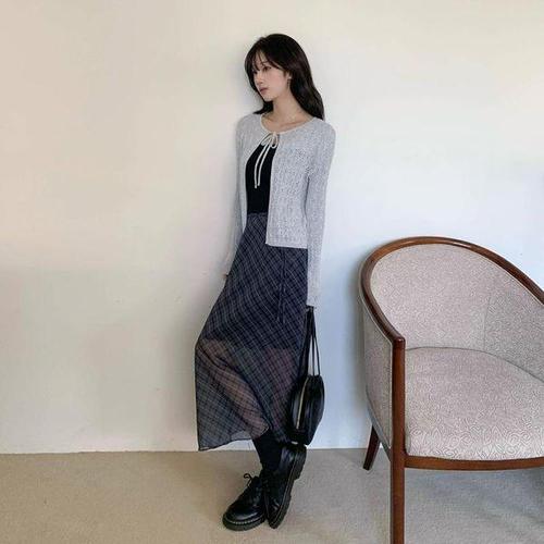 20대 여성 체크 나시원피스 가디건 세트 데이트룩 W9970C8
