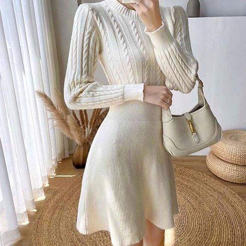 가을 꽈배기 슬림 니트 원피스 하객룩 심플 데이트룩 WAE9E28