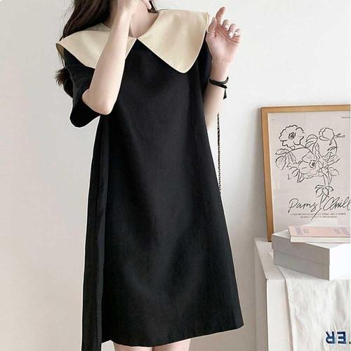 예쁜원피스 배색 하객룩 블랙원피스 뒷매듭끈 데이트 와이드 카라 WFJHNBQ