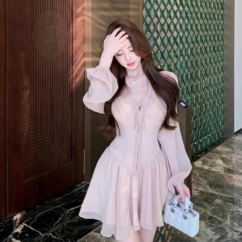 피콜로 여자 데일리룩 스커트 미니 추동 긴팔 플레어 원피스 힙업 KUK4