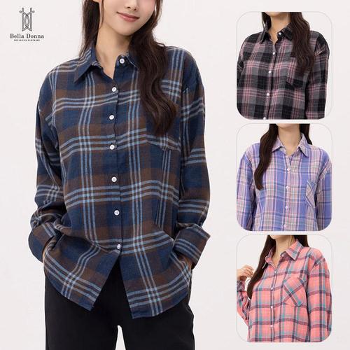 벨라도나 간절기 여성 클래식 데일리룩 루즈핏 빅체크 남방티셔츠 이너티 Bon-2598