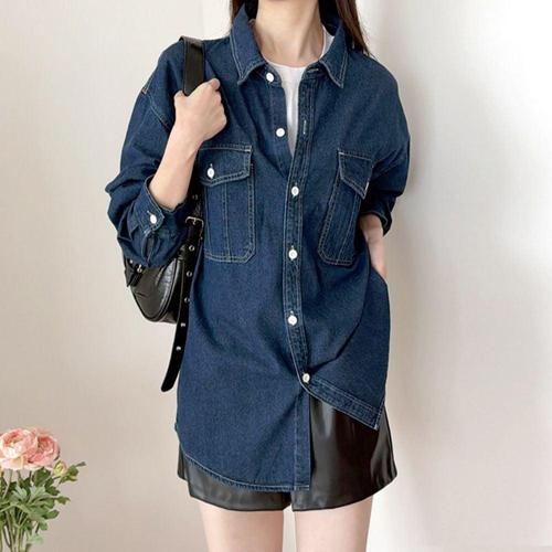 여성 루즈핏 데일리 데님 카라 캐주얼 셔츠 IN-DN24
