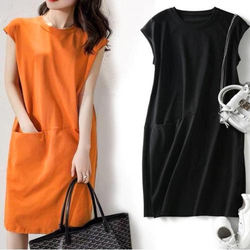 해피유통 여성 여름 루즈핏 캐주얼 롱 캐주얼 민소매 솔리드 원피스jh lmy