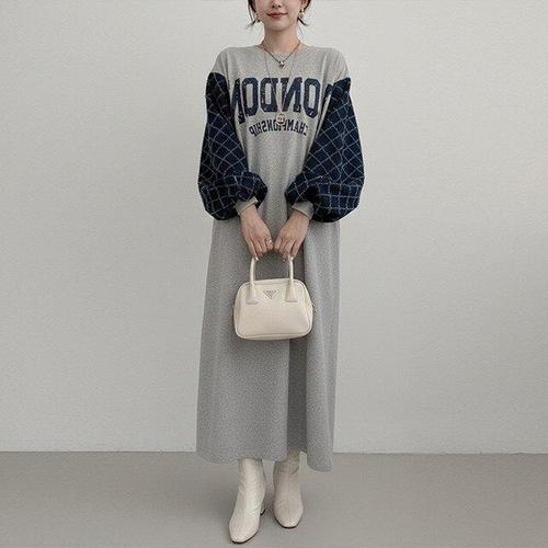 [쿠잉]빅사이즈/오버핏 플랜트 긴팔 롱원피스 데일리/홈웨어