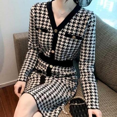 [엄지척]배색 블랙 라인 포인트 체크 원피스 봄 가을 데일리룩_19806149_667501