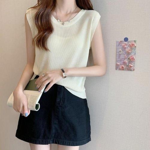 [센트럴몰]데일리 모던 골지 라운드 나시 탑