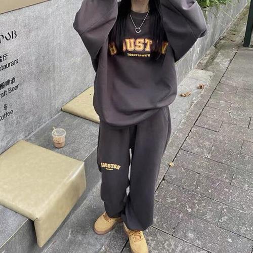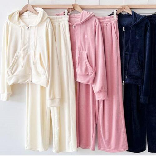 ORZQU 가을겨울 여성 캐주얼 오버사이즈 기모 솔리드 후드 집업 맨투맨 밴딩 긴바지 투피스