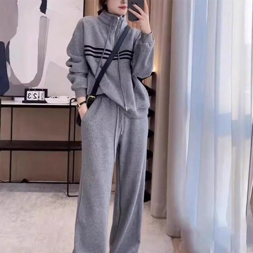 여성 후드 트레이닝 투피스 크롭 후드집업 하이웨스트 와이드 롱 팬츠 편안한 데일리룩