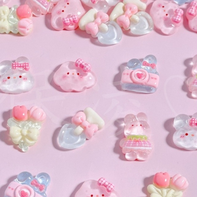 [고퀄리티 데코덴 파츠] 대용량 레진 파츠 다꾸 탑꾸 폰케이스 꾸미기 귀여운 캐릭터 데코 / DIY 방과후 핸드메이드 수업 재료, 50개, 분홍색
