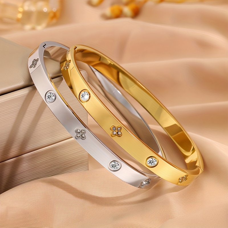 TEMU 독특한 클로버 디자인의 스테인리스 스틸 팔찌 세트 2개, 주얼리 액세서리, 선물용, 캐주얼 스타일, 사계절 내내 활용 가능한 다용도 주얼리