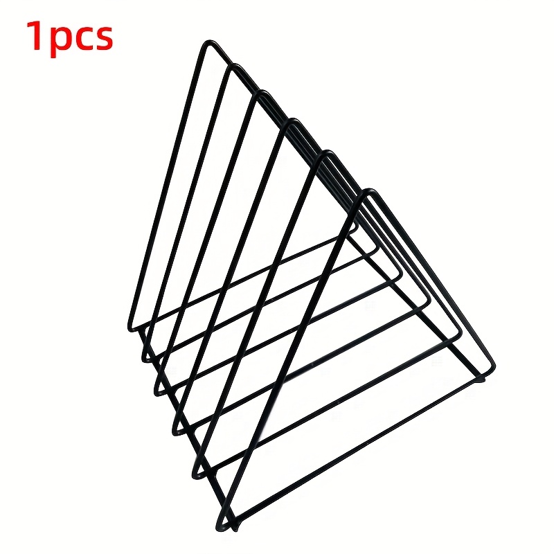 TEMU 1개 메탈 삼각형 수납 랙 | 5개 슬롯 비닐 레코드 정리함, 클래식 블랙/화이트 디자인 (가정, 기숙사용) - 간편한 데스크탑 파일 분류 정리함, 기숙사 정리 | 모던 메탈 랙 | 튼튼한 철제 구조, 미완성 끝단