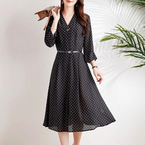 [헬리꽁땡](55~88)잔도트브이넥 쉬폰원피스+벨트 캐주얼원피스 쉬폰원피스 엄마옷 임산부가을원피스 가을..