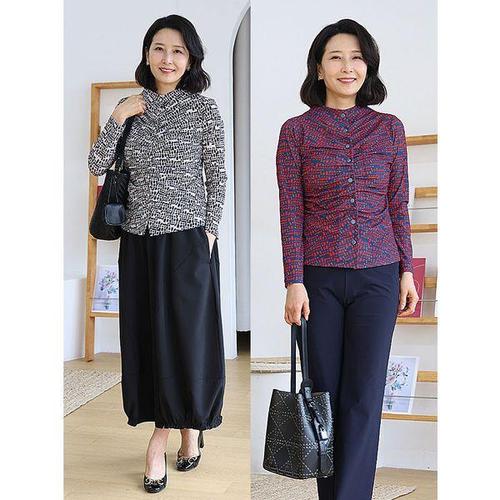 [쉬즈마담]T57514 어반도트 셔링 하이넥블라우스 60대엄마옷