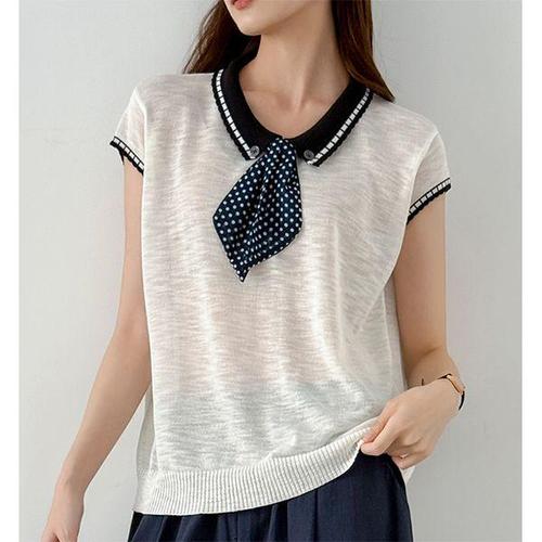 [패션시그널]도트스카프 카라넥 니트티셔츠 ECBA20