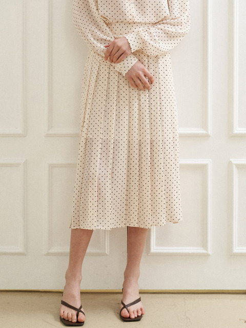 [플로브] 리버 플리츠 스커트 (도트 아이보리)