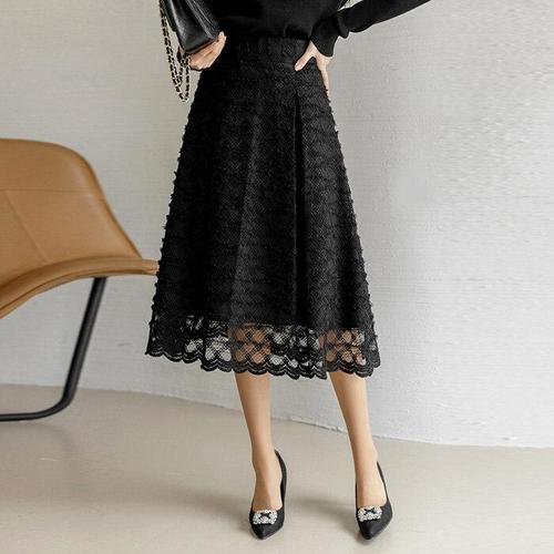 [신상오픈런]여성 레이스 프릴 미디 스커트 땡땡이 캉캉 밴딩