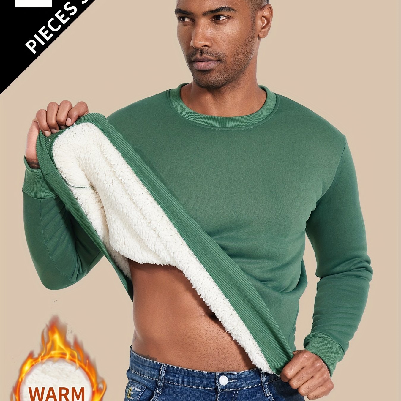TEMU 남성용 안감 두꺼운 스웨트셔츠 - 캐주얼 라운드넥 긴팔 풀오버, 겨울용 보온 탑