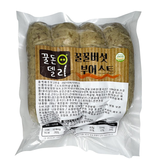 (당일발송)[데일리바베큐] 독일식 수제소시지 꿀꿀버섯부어스트, 1개, 280g