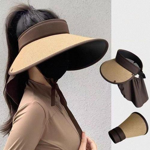 [에이치플러스몰]와이드 챙모자 넥커버 라탄 돌돌이 썬캡