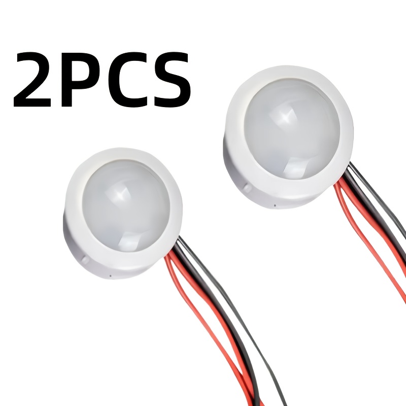 TEMU 2팩 PIR 운동 감지 센서 감지기, 12V/24V DC 적외선 인체 유도, 미니 LED 조명 제어, 플라스틱, 구리 접촉, 크림프 종결, 하드와이어 룸 전기, 배터리 없음, 스마트 실내 램프 스위치