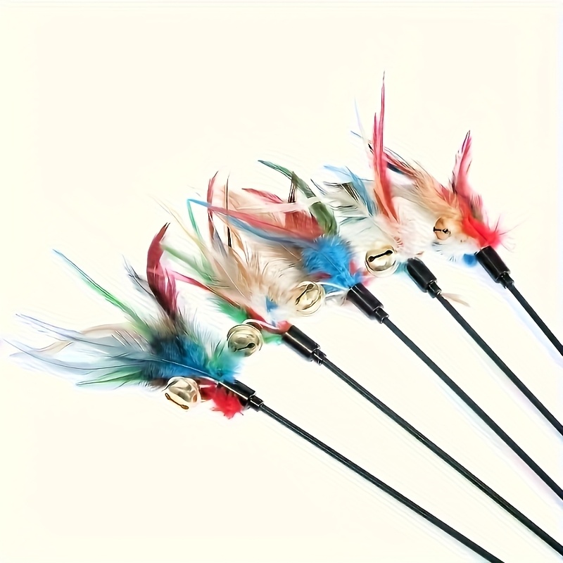 TEMU 내구성 강한 플라스틱 고양이 깃털 장난감 - 리얼리스틱 깃털 & 벨 포함, 모든 고양이 종류/유형에 적합, 새끼 고양이 & 성묘용, 야외 놀이 및 사냥 자극 액세서리
