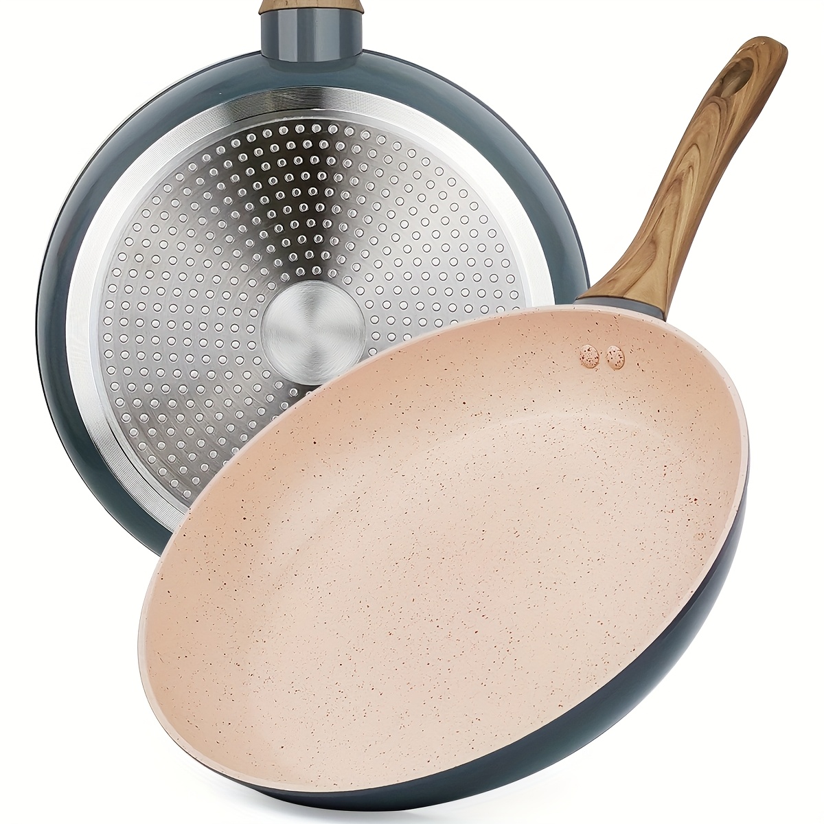 TEMU 28cm 블루 논스틱 프라이팬 - 모든 스토브에 적합, 빠른 가열 및 균일한 코팅, 내구성 있는 알루미늄 소재와 단열 핸들, 스테이크, 계란, 토르티야 등에 완벽, 가정용 주방을 위한 대용량 스켈렛
