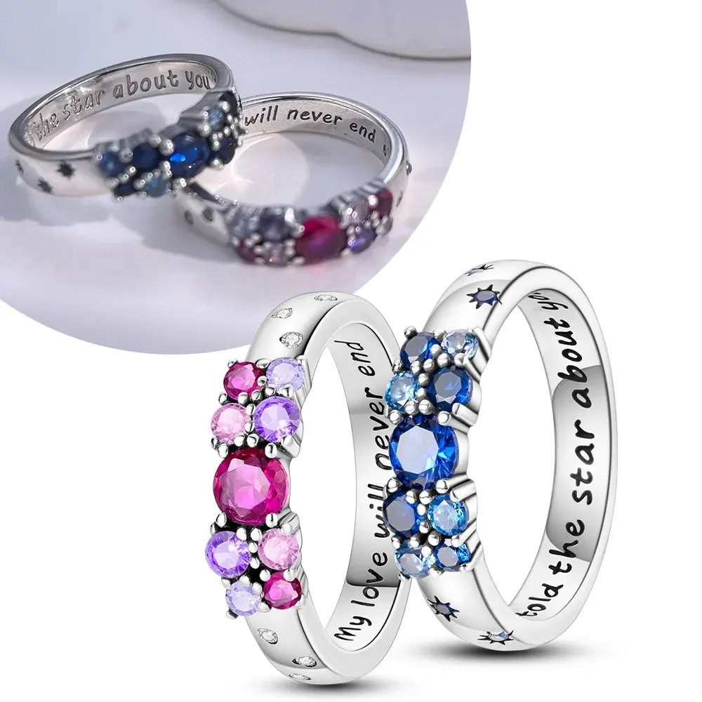 여성을위한 진짜 100% 핑크 블루 지르콘 스파클링 반지 파인 쥬얼리 기념일 선물 925 스털링 실버