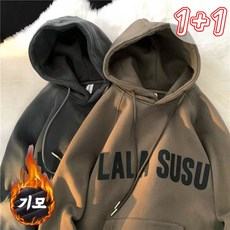 1+1 2장세트 빅사이즈 기모후드티 외출 레터링 베이직 두꺼운 캐주얼 맨투맨 가을겨울