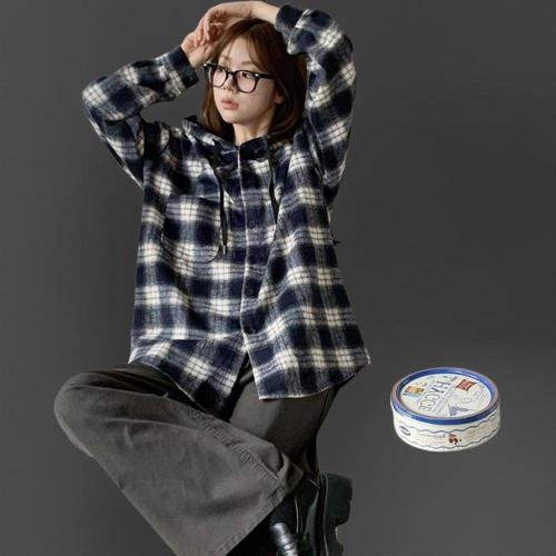 [미라클세븐]여성 클래식 두꺼운 루즈핏 체크 후드 셔츠