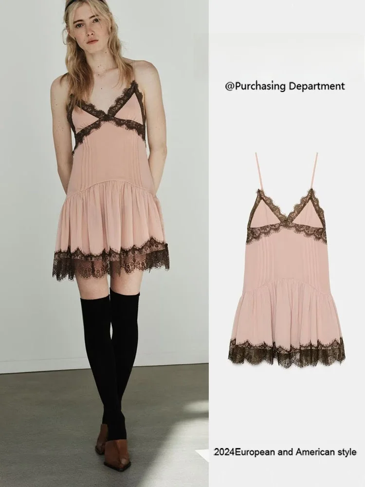 티달리프 2025 여성 레이스 트림 캐미 드레스 민소매 딥 V넥 섹시 패셔너블 시크 의상