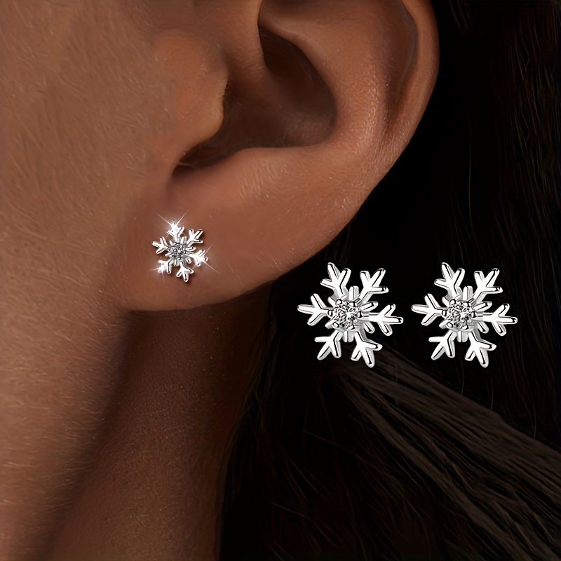 TEMU 세련된 여성용 귀걸이, 섬세한 꽃 디자인, 925 실버와 합성 지르코니아 제작, 소형 달콤한 액세서리 (박스 미포함)