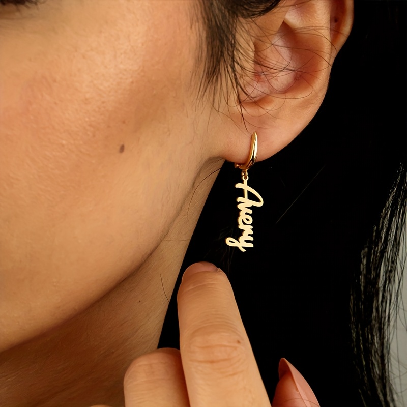 TEMU 맞춤 스테인리스 스틸 이름 귀걸이, 개인 맞춤 레터 액세서리, 캐주얼 및 포멀 웨어 모두에 우아함, 웨딩 주얼리, 여성용 발렌타인데이 선물, 어머니, 친구, 동급생 및 가족에게 완벽.