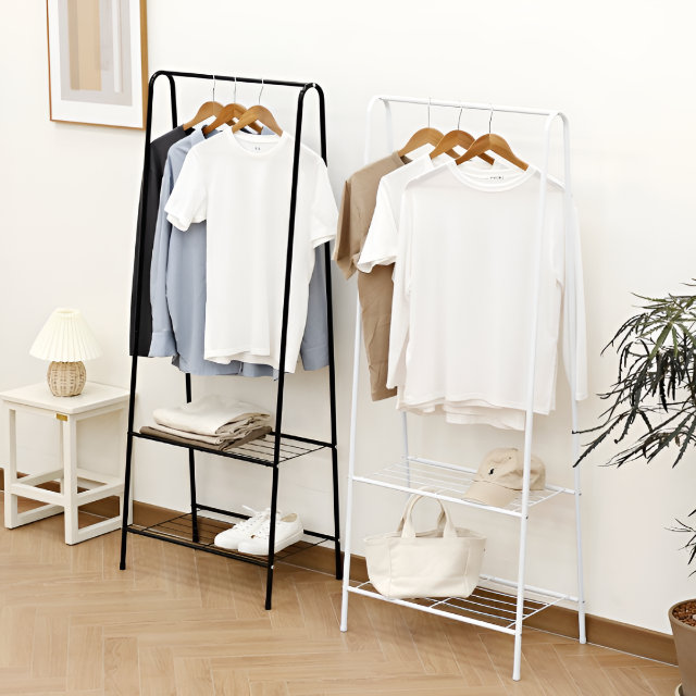 땡스리빙 이동식 2단 수납형 행거 가방걸이 드레스룸 옷걸이 튼튼한 철제 선반 옷가게 행거