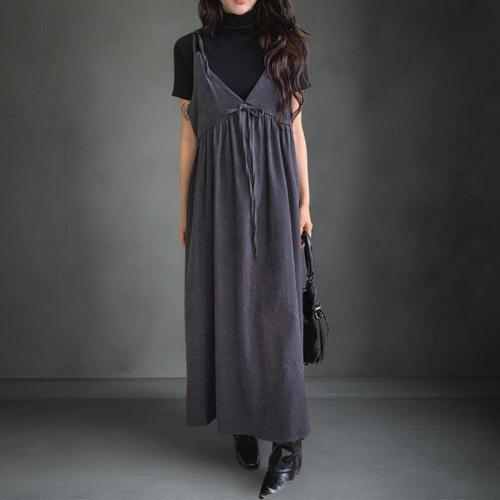 [다잇템]여성 코르셋 울혼합 후레아 롱 스트랩 드레스