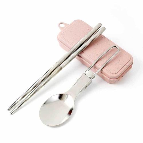 [HYIK19FE_4B]접이식 핑크 2인세트 수저세트 등산수저