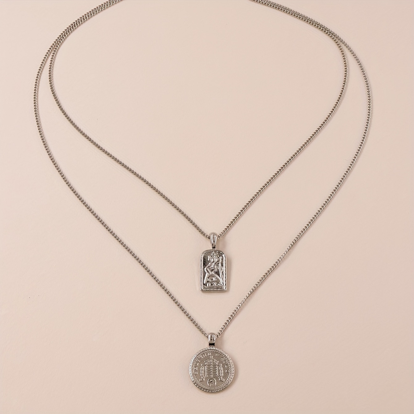 TEMU 힙합 스타일 더블 레이어 코인 펜던트 목걸이, 음악 축제 파티용 (1개/세트)