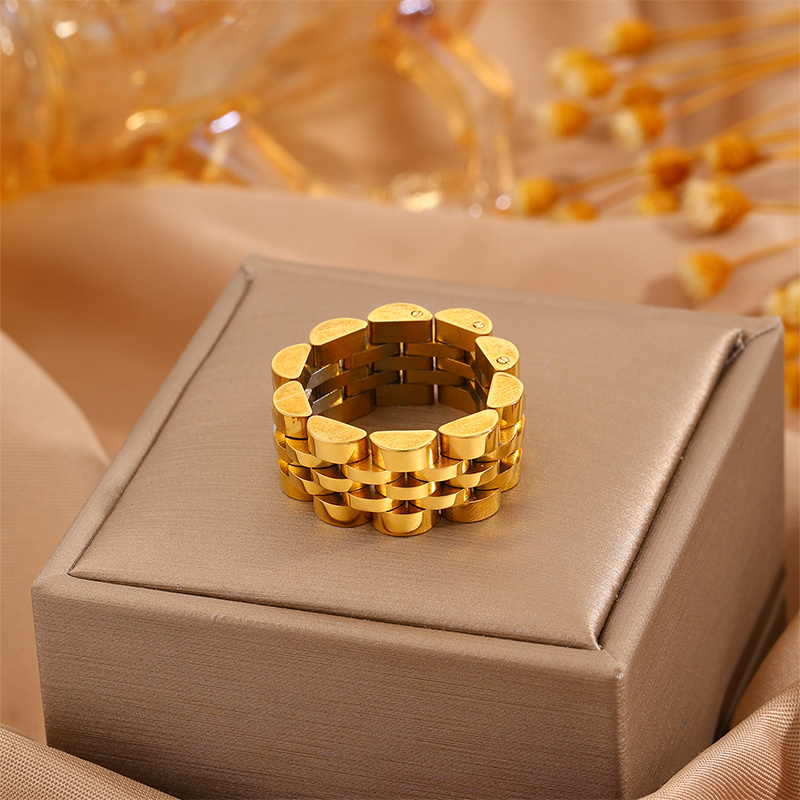 TEMU 1개 우아한 스테인리스 스틸 반지 & 골드 디자인 - 남녀 공용 내구성 좋은 스타일리시 액세서리, 데일리 출퇴근 및 여행에 적합