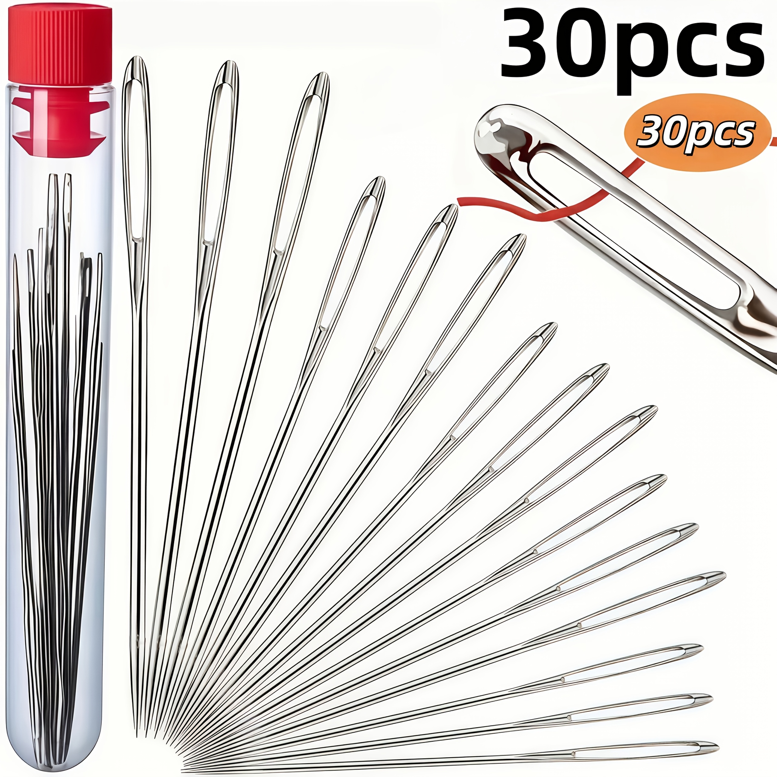 TEMU 대형 눈 바늘 30개 세트 - 간편하고 빠른 바늘 스타일 자수 바늘 - 5가지 다양한 사이즈, 다양한 용도에 적합 - 자수, DIY 공예 및 재봉에 적합 - 매끄럽고 날카로운 - 필수 재봉 도구 - 손바느질 바늘 - 재봉 용품