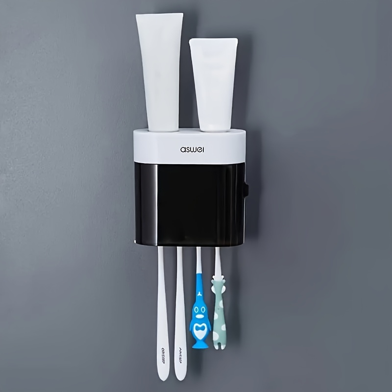 TEMU 벽걸이형 자동 치약 디스펜서 세트 – 쉬운 푸시버튼 조작, 이중 튜브 디자인, 드릴 없는 설치, 슬릭한 화이트 & 블랙 욕실 액세서리