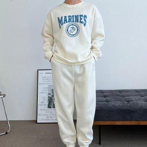 [상하의세트] 가비진 남성용 레터링 포인트 따뜻 기모 맨투맨+기모 밴드 조거 팬츠 바지 트레이닝세트