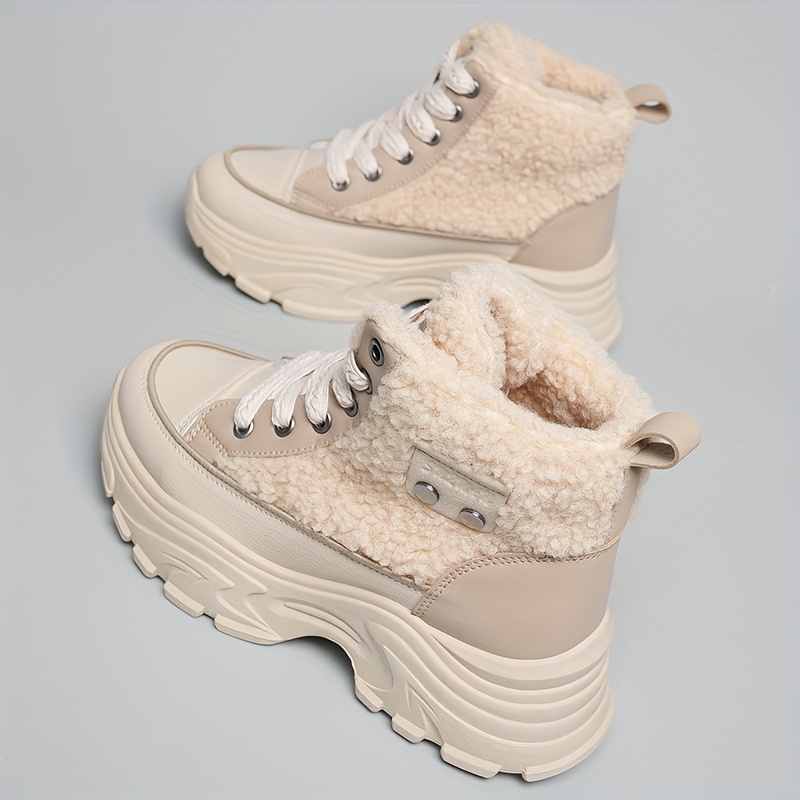 TEMU 여성용 겨울 따뜻한 플랫폼 스니커즈 - 베이지 인조 라운드 토 하이탑 부츠, 두꺼운 밑창 & 플러시, 베이지/얼음 & 눈용 트랙션 트레드 - 캐주얼 겨울 신발 (No s)|여성운동화