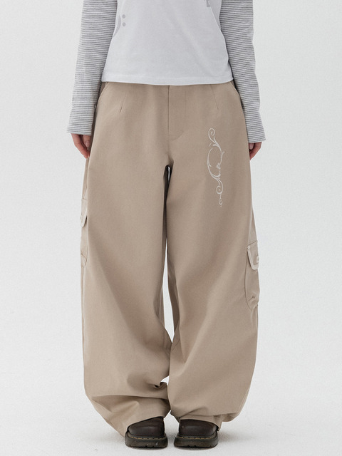 [하이스쿨디스코] 카고 와이드 코튼팬츠_베이지