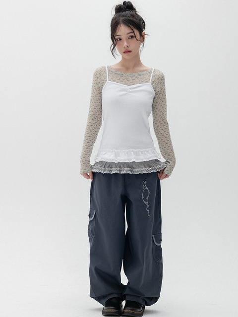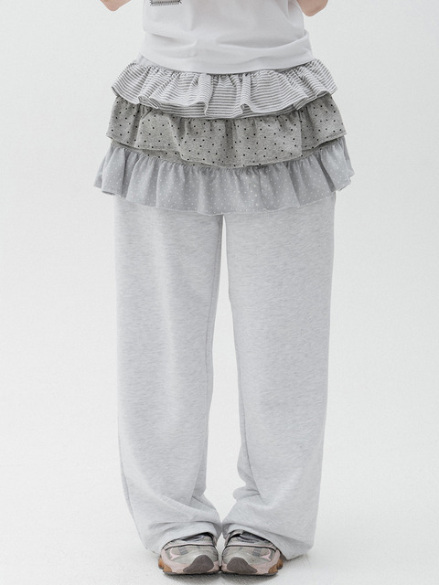 [하이스쿨디스코] 믹스패턴 캉캉 스커트 레이어드 스웻팬츠_화이트멜란지