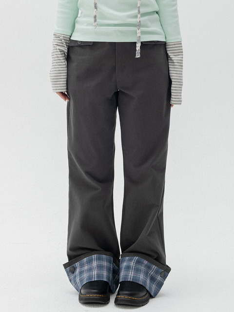 [하이스쿨디스코] 롤업 체크 부츠컷 팬츠_차콜