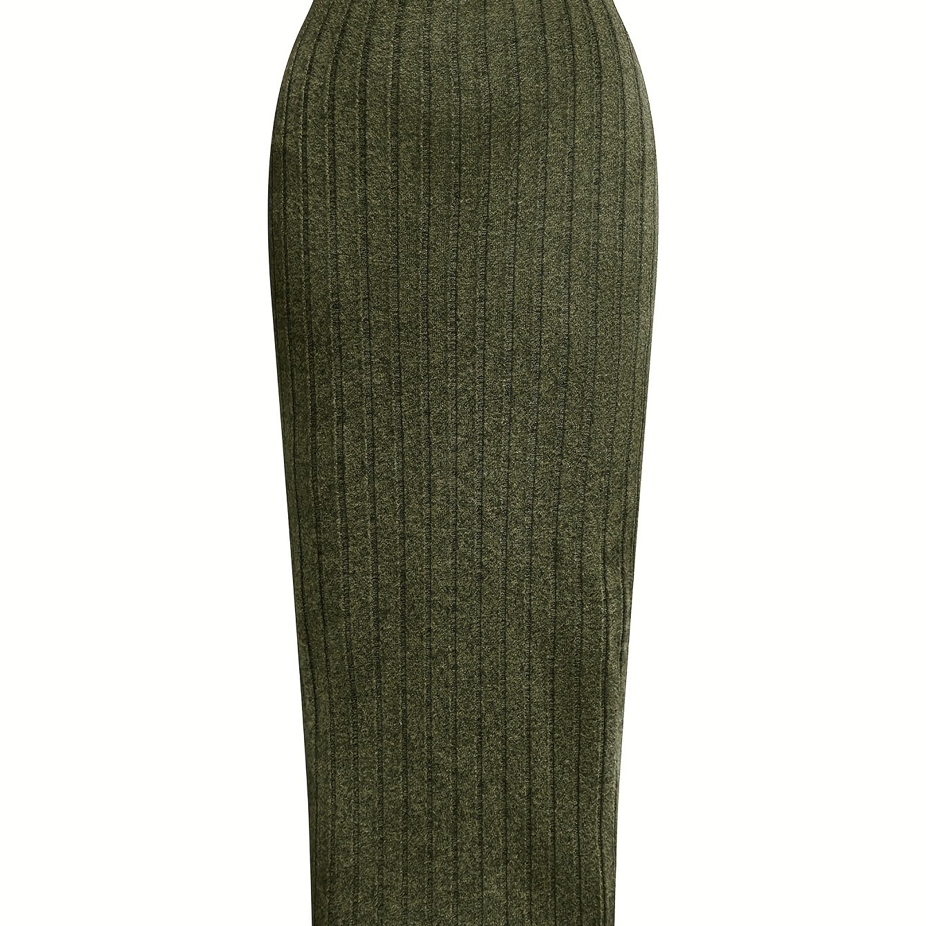 TEMU 여성용 하이웨이스트 리브드 펜슬 스커트 - 신축성 허리밴드, 단색, 세탁기 사용 가능, 일반 길이 가을 사무실 & 캐주얼 스커트 - 우아함 컬렉션, 중간 탄력